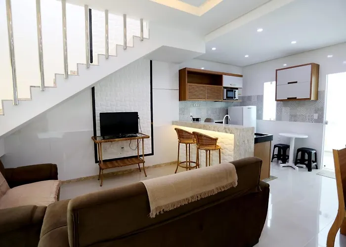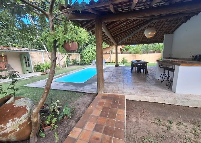 Located only a 9-minute stroll from Beco das Cores, the 3-bedroom Encantos De Taperapuan Duplex Porto Seguro villa includes a terrace with views of the pool. Situated in the Praia de Taperapuan district, the Porto Seguro villa features a private swimming pool for guests to unwind in.